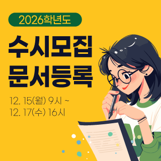 재학생 대학생활에 필요한 정보들을 제공합니다. 예비신입생 예비신입생에게 와이즈유를 소개합니다. 교직원&동문 와이즈유의 다양한 소식들을 전달합니다. WHO?자랑스런 와이즈유 OPEN CAMPUS오픈캠퍼스 YES21교직원 그룹웨어 WISEU TIMES와이즈유 타임즈 재학생 Mypage 학사정보시스템 YCMP(취업·비교과) 학사일정 등록금납부 수업 학적 학사서식 증명서발급 졸업인증제 e-class 교수학습개발원 도서관 스쿨버스 학생생활관 (기숙사) 교내식당 주간메뉴 국제교류 학생활동 풋살경기장 잔디운동장 창의설계실 생활정보 캠퍼스맵 양성평등상담실 장학 학습지원 메타버스 예비신입생 입학안내 대학소개 학과소개 언론홍보 내인생의스승 자랑스런 와이즈유인 오시는길 학생생활관 (기숙사) e-class 지원자조회 수강신청 교과목보기 메타버스 교직원&동문 YES21 교직원정보시스템 공지사항 학사일정 e-class 도서관 교수학습개발원 대학이미지(UI) 전화번호검색 캠퍼스맵(강의실검색) 증명서발급 메타버스 닫기 1 / 정지 재생 지금 와이즈유? 보도자료 서정렬 교수‧김승기 팀장, 인공지능 저서 잇달아 출간 ‘눈길’ 2025-12-15 보도자료 외국인 유학생, 기장향교서 한국 전통문화 만끽 2025-12-15 보도자료 시니어모델학과, 미래 성장 워크숍 성공 개최 2025-12-12 보도자료 외국인 유학생, 성우하이텍 견학 한국기업문화 체험 2025-12-12 보도자료 미용예술학과, 부산 美아트 페스티벌 대상 등 휩쓸어 2025-12-12 보도자료 K푸드조리전공, 떡꼬치 나눔봉사로 감동 전달 2025-12-11 보도자료 부산RISE사업단, ‘글로벌 창업캠프’ 성공 개최 2025-12-11 보도자료 QS 아시아대학평가 부산 3위‧부산사립대 1위 2025-12-01 이달의 와이즈유 12.01 2학기 기말고사 시간표 공고 12.01 수업일수 90일(자퇴자 및 휴학자 등록금 1/2 환불 마감일)-군입대휴학자 중 성적인정자는 환불대상에서 제외 12.02 동계 계절학기 2차 폐강 및 개설교과목 확정 12.08 보강기간(학사휴무기간) 12.15 2학기 기말고사 기간 12.15 2학기 성적입력 기간 12.22 동계방학 시작 12.29 2학기 성적열람 및 정정기간 정지 재생 학사일정 더보기 와이즈유 공지사항 와이즈유 새소식 전체 전체 더보기 학사 학사 더보기 장학 장학 더보기 취업 취업 더보기 일반 일반 더보기 사회봉사 사회봉사 더보기 바로가기 학사정보시스템 교내식당 스쿨버스 YCMP e-class 증명서발급 수업 학사Q/A 도서관 다양한 소식을 SNS을 통해 알립니다. 영산대학교 페이스북 바로가기 영산대학교 유튜브 바로가기 영산대학교 카카오채널 바로가기 영산대학교 블로그 바로가기 영산대학교 인스타그램 바로가기 영산대 “영심비 와이즈유 페스티벌” 와이즈유 영산대학교 K-MOVE 2개 운영 사업 선정 와이즈유 영산대학교 조리예술학과 김수현 학생, 산업인력공단 이사장상 수상 와이즈유 영산대학교 조리예술학과 김수현 학생, 산업인력공단 이사장상 수상 정지 재생 MICE특성화 해운대캠퍼스Haeundae Campus 관광문화예술대학 호텔관광학과 항공관광학과 관광컨벤션학과 레저스포츠관광학과 조리예술학부 K-Food조리전공 동양조리전공 서양조리전공 Bakery&Beverage전공 글로벌조리전공 미용예술학과 디자인학부 패션디자인전공 인테리어·도예디자인전공 연기공연미디어학부 연기공연예술전공 방송사진미디어전공 K-Pop전공 웹툰학과 게임VR학과 만화애니메이션학과 AI그래픽학과 시니어모델학과 웰니스보건대학 물류경영학과 글로벌학부 한ㆍ베트남통역전공 K-비즈니스전공 비즈니스법전공 미래융합대학 부동산학과 사회복지학과 헬스케어학과 아동·가족상담학과 미용건강관리학과 웰빙조리창업학과 실버재활학과 웰니스특성화 양산캠퍼스Yangsan Campus 웰니스보건대학 간호학과 물리치료학과 치위생학과 태권도학과 동양무예학과 경찰행정학과 융합전공학부 동양상담복지학과 한국어문화교육학과 기계ㆍ자동차공학과 수소시스템공학과 전기전자공학과 건축공학과 컴퓨터공학과 드론공간정보공학과 미래융합대학 인문문화융합학과 노인복지상담학과 성심교양대학 자기설계전공학부